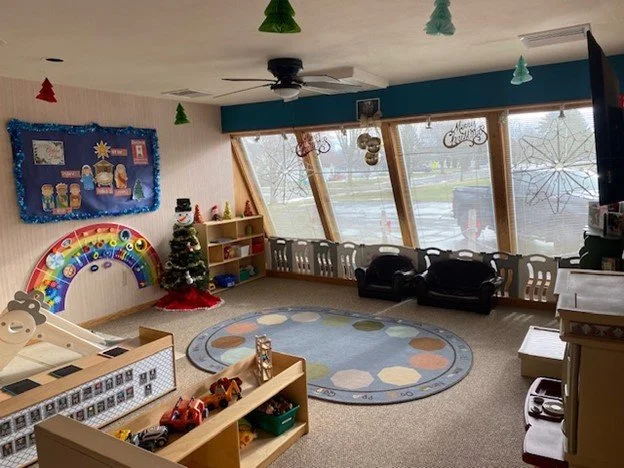 For children under 2 years old, they follow his or her own individual schedule. Children are fed, take naps and have their diapers changed on a schedule determined and communicated to our staff by parents. Throughout the day, children explore a variety of materials promoting their continued physical, social-emotional, language and cognitive development. Children will participate in small and large group activities as well. Weather-permitting, outdoor play takes place twice daily in our fenced playground for a minimum of 15 minutes. Many days children also go on a stroller-walk.