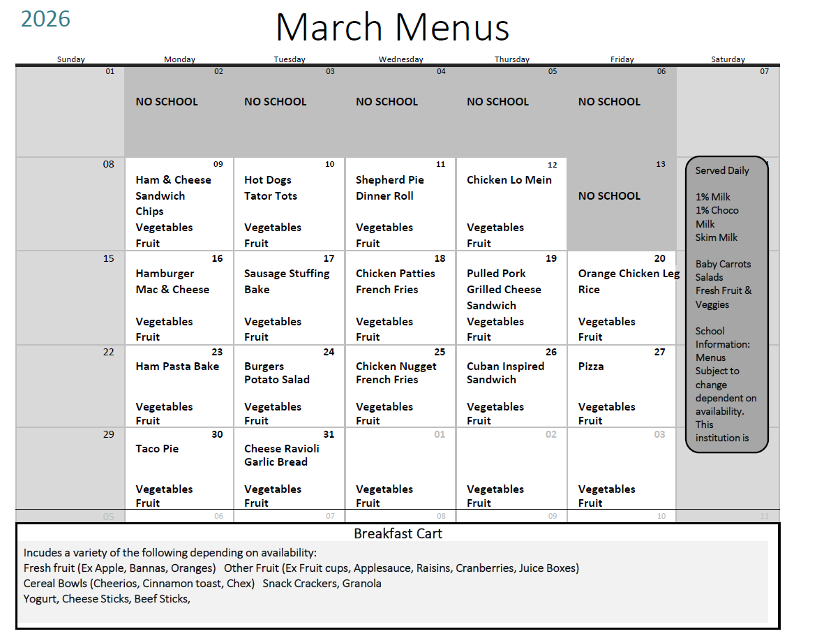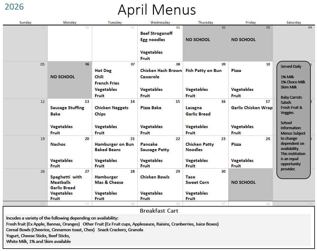 RESOURCES FOR PARENTS OtherSchool Calendar: 2025 - 2026 2026-2027 Lunch and Parents' BulletinKnightly NewsMarch MenuApril Menu